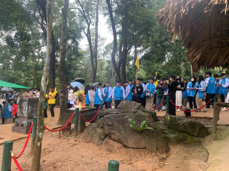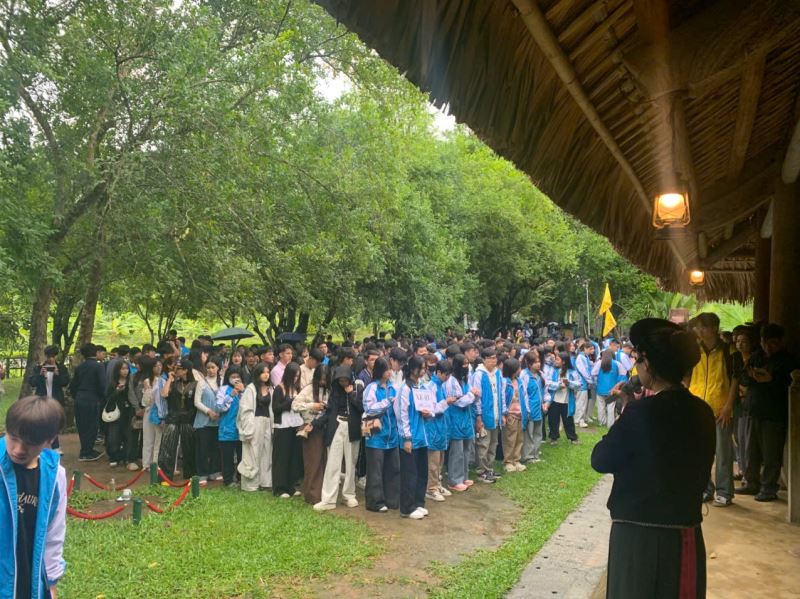 Hành trình tiếp nối qua những địa danh thiêng liêng như lán Nà Nưa, đình Tân Trào, cây đa Tân Trào, đình Tân Trào – nơi đã ghi dấu những quyết định lịch sử trọng đại của cách mạng Việt Nam. Giữa khung cảnh núi rừng xanh mát, thầy cô và học sinh lắng nghe từng câu chuyện xúc động, càng thêm tự hào, biết ơn và trân quý hơn giá trị của hoà bình hôm nay.