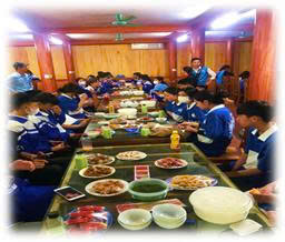 Sau hành trình ý nghĩa buổi sáng, đoàn cùng nhau thưởng thức bữa trưa ẩm thực chiến khu – giản dị mà đậm đà bản sắc quê hương, với những món ăn dân dã như cơm lam, gà đồi, rau rừng, canh măng, thịt trâu gác bếp… Buổi trưa còn là dịp để đoàn tham quan làng văn hoá Tân Lập, tìm hiểu phong tục tập quán, đời sống sinh hoạt của đồng bào các dân tộc Tày, Nùng,… Nét mộc mạc, chân thành của người dân cùng cảnh sắc bình dị đã mang lại cho mọi người cảm giác gần gũi, thân thương và tự hào về bản sắc văn hoá dân tộc Việt Nam.