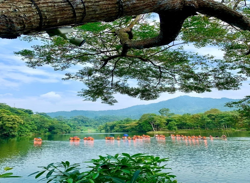 ( Ảnh trải nghiệm bơi mảng nghe hát then trên hồ Nà Nưa và ngâm chân lá thuốc)