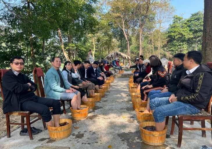 - Đoàn trải nghiệm bơi mảng hát then trên hồ Nà Nưa và trải nghiệm ngâm chân lá thuốc của người Tày.