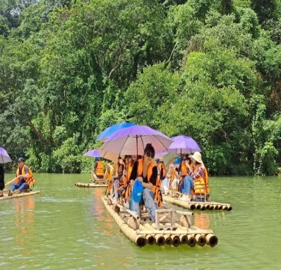 Từ 10h 00 đến 10h30: Đoàn di chuyển đến hồ Nà Nưa tham gia trải nghiệm Bơi mảng nghe hát then, ngắm cảnh thư giãn, check-in tại Cầu hoa Khuôn Pén, Cặp đàn tính khổng lồ, đảo hoa Khuôn Pén.