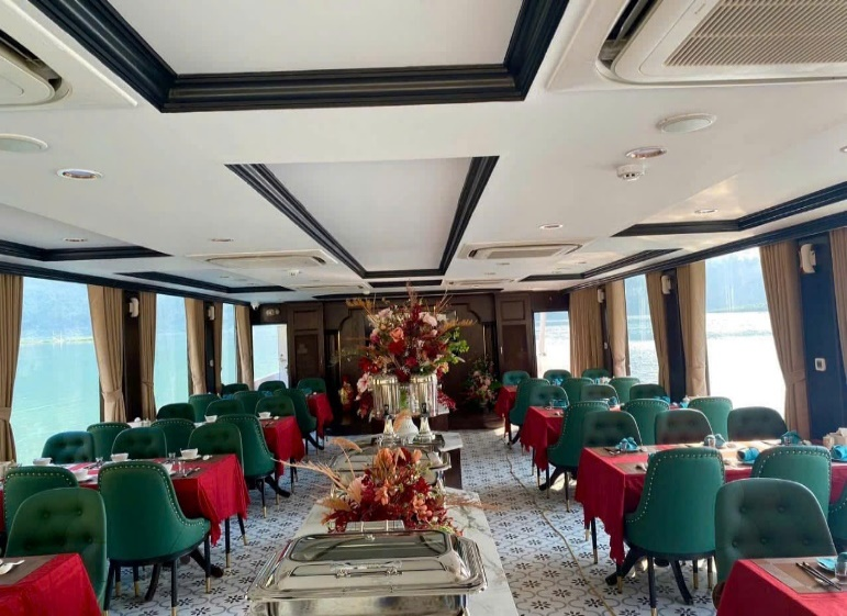 9h00- 15h00: Đoàn di chuyển xuống du thuyền, ăn trưa và ngắm cảnh lòng hồ thủy điện Tuyên Quang đây là nơi hội tụ của hai dòng sông trữ tình là sông Gâm và Sông Năng, được bao bọc xung quanh bởi 99 ngọn núi nhấp nhô, trùng điệp. Trên tuyến đi tham quan long hồ Quý khách sẽ được ngắm Núi Pác Tạ; vách đá nàng tiên, chú khách; ngắm khu 99 ngọn núi; ngắm núi đôi và đặc biệt là Khu được ví như “Hạ Long cạn giữa đại ngàn” nổi tiếng chính là Cọc Vài Phạ tức Cọc buộc Trâu trời. Trên tuyến du lịch Quý khách sẽ được ghé thăm đền Pác Tạ, đền Pác Vãng linh thiêng, được người dân nơi đây thờ kính.